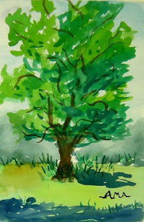 We used black and white photo references and looked at the tree shapes... the leaves, not as individual, but as shapes/clumps with a light side and dark side....