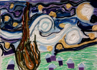 We looked a the brushwork of Van Gogh paintings and thought that yarn, felt and markers might make the same texture feeling.... and it did!